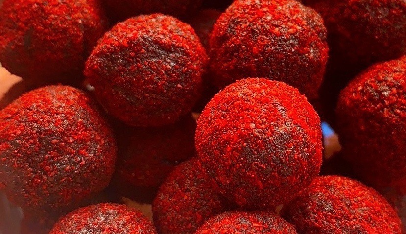 Bouillette Magma enrobée à trois reprise avec un liquide sucré d’acides aminés et de robin Red de chez Haith’s .