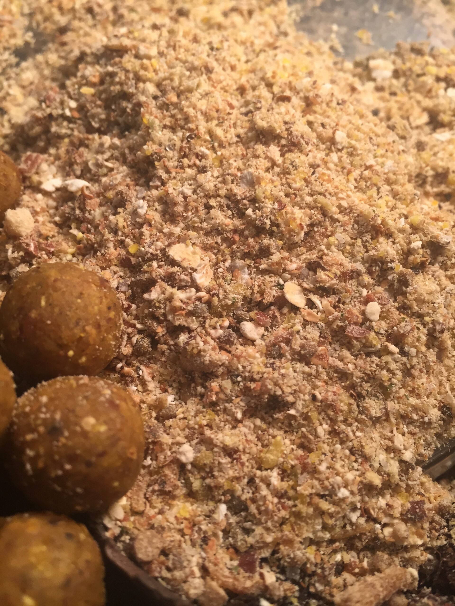 A ce mix de base nous ajoutons les ingrédients qui rejoingnent la gamme de bouillettes » Farine de tiger, Farine de pellet, birdfood, farine de poisson, etc…